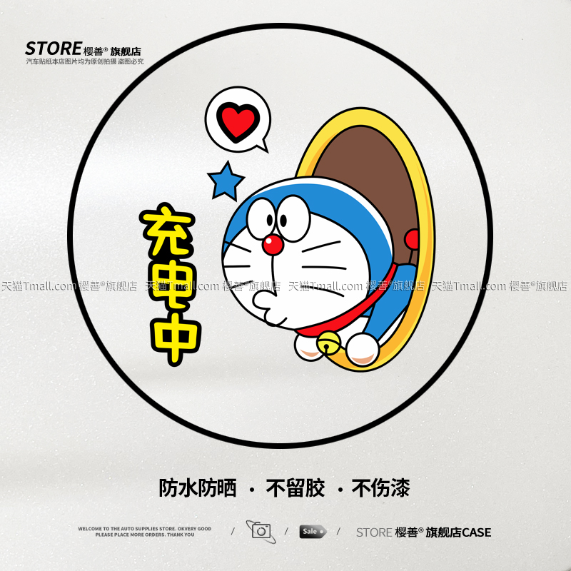 新能源汽车电动车充电口车贴油箱盖贴纸加油盖装 饰提示贴画可爱