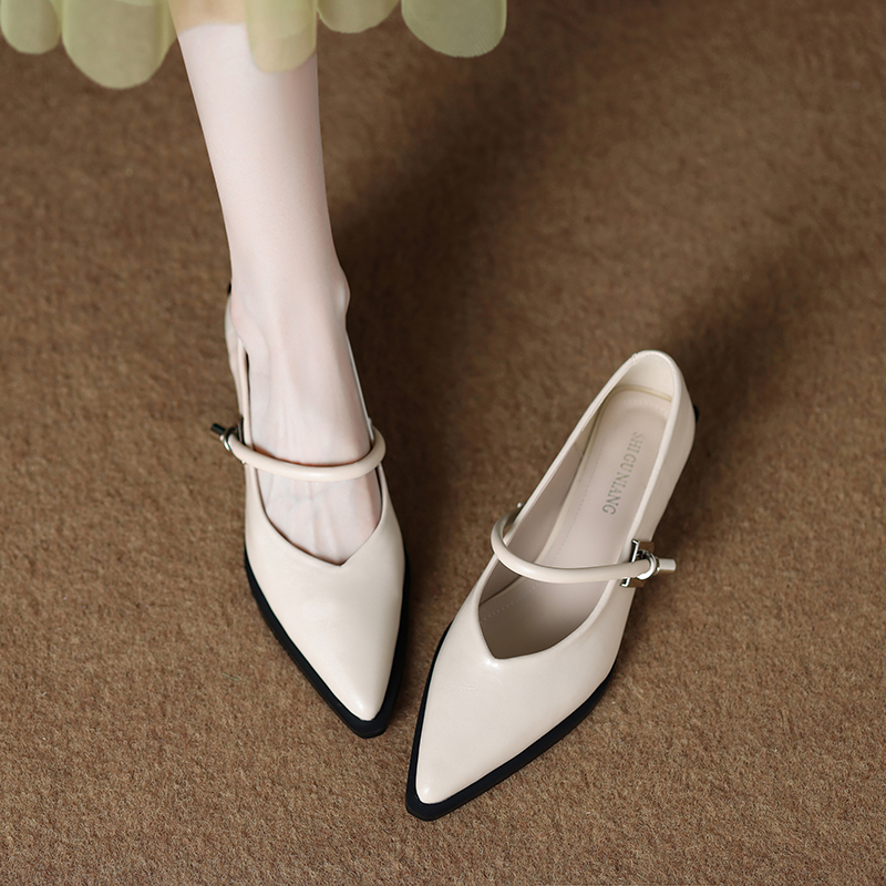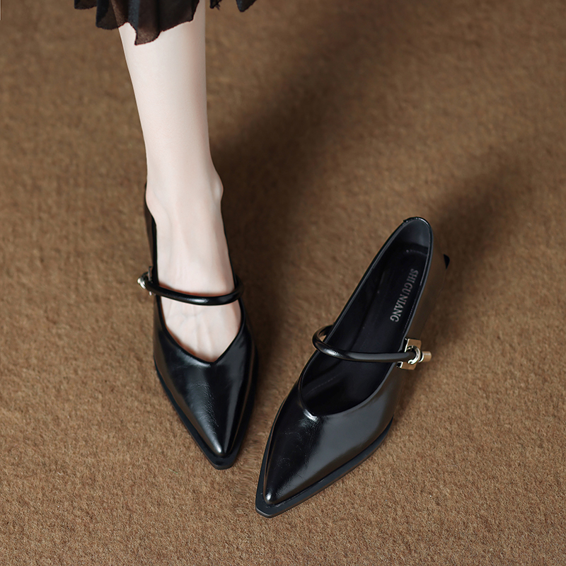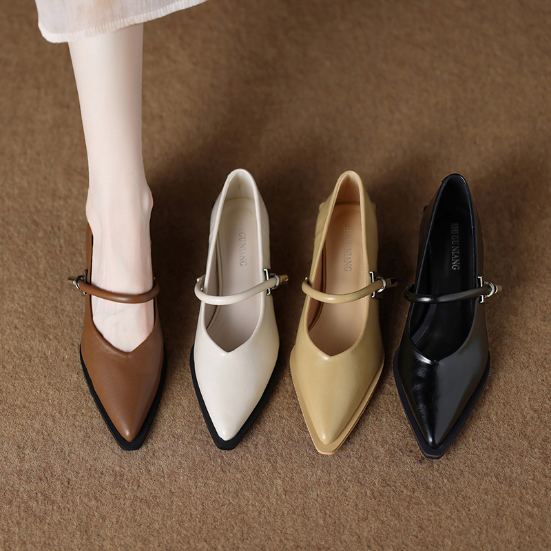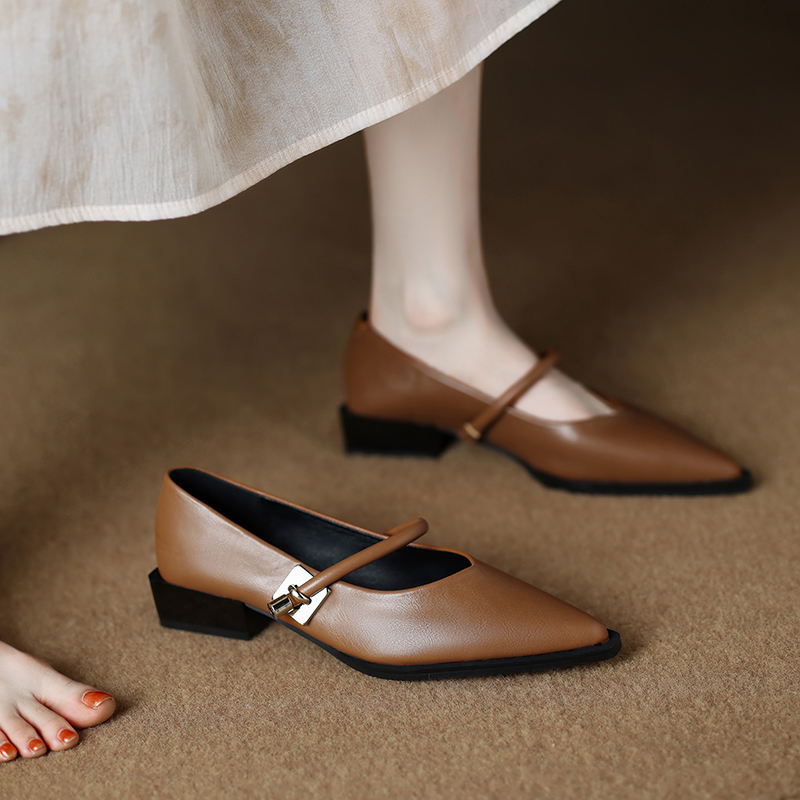 温柔玛丽珍鞋 配裙子棕色尖头法式 女2025春夏新款 低跟真皮复古单鞋