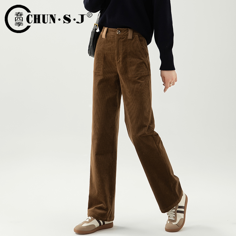 休闲长裤 咖色条绒女裤 直筒裤 窄版 灯芯绒裤 阔腿裤 子女秋冬新款