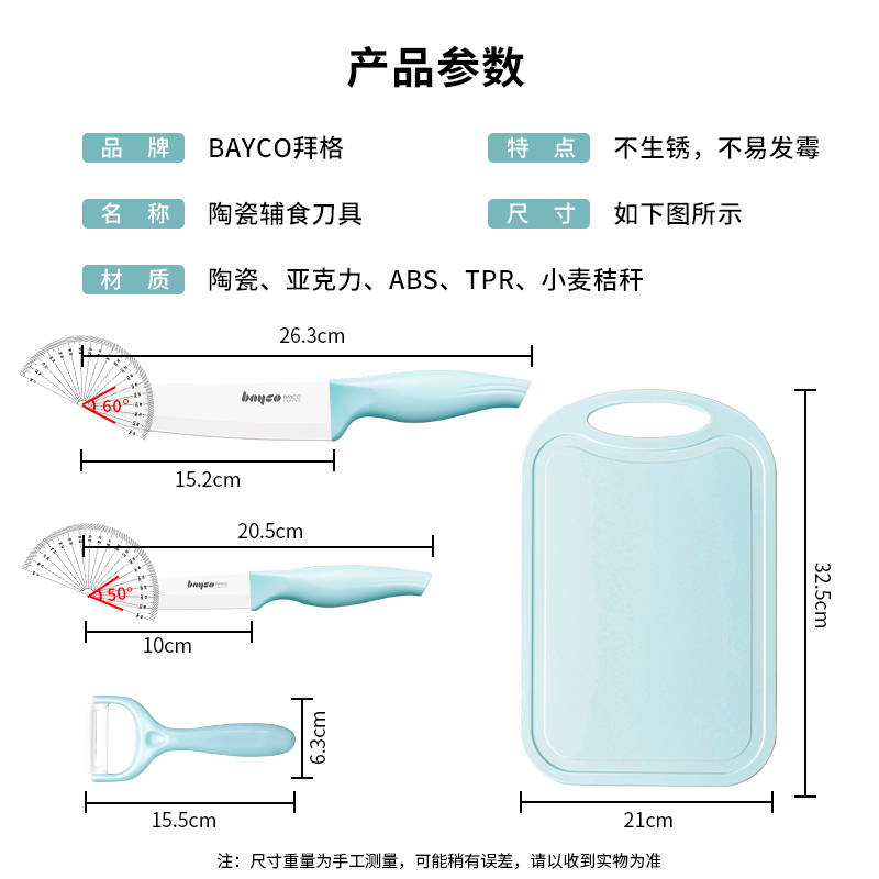 拜格陶瓷刀水果刀家用便携小刀瓜刨学生宿舍专用切水果削皮刀套装