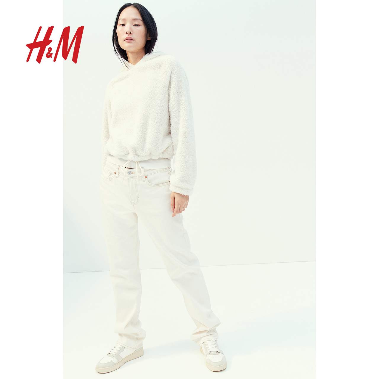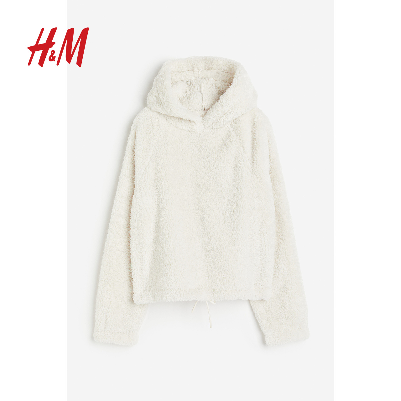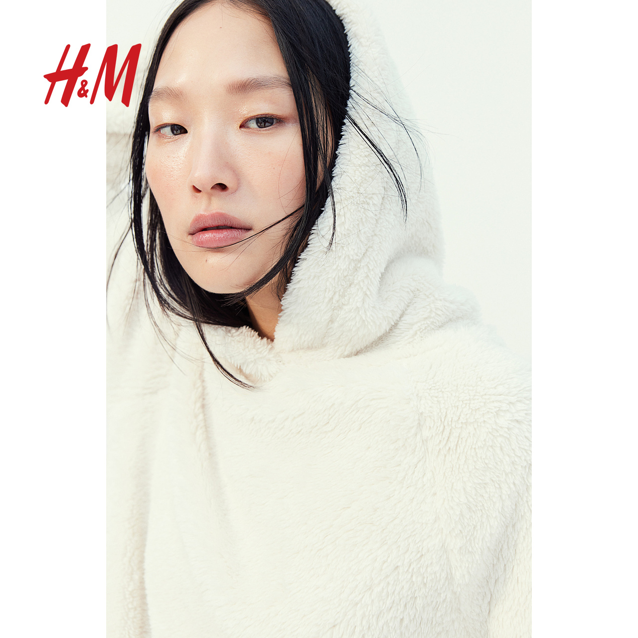 1204962 休闲居家慵懒舒适亲肤毛绒连帽衫 HM女装 卫衣秋季