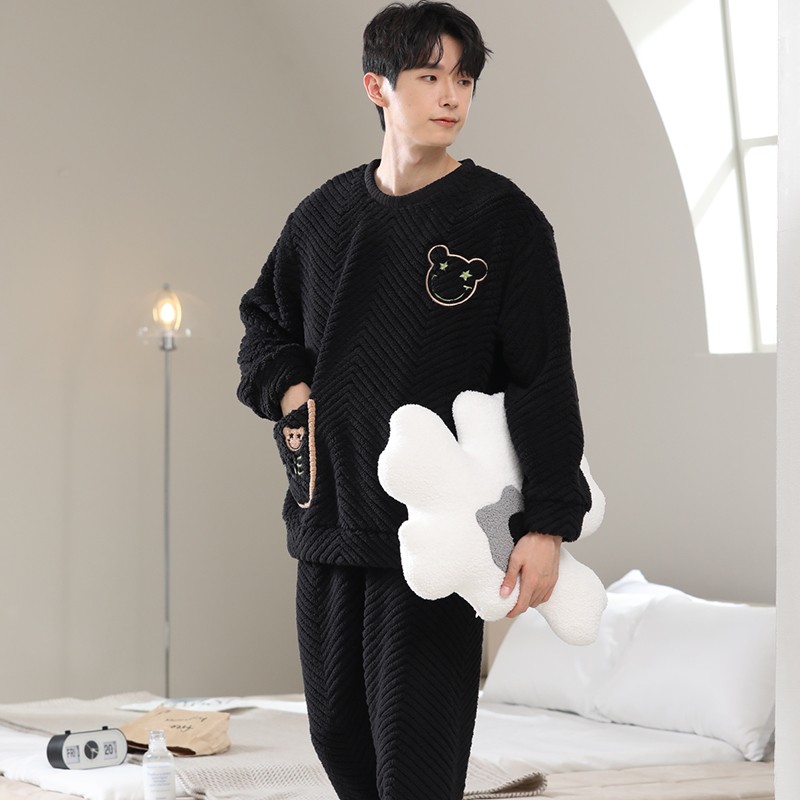家居服套装 男款 保暖法兰绒男式 加绒加厚2024新款 睡衣珊瑚绒秋冬季