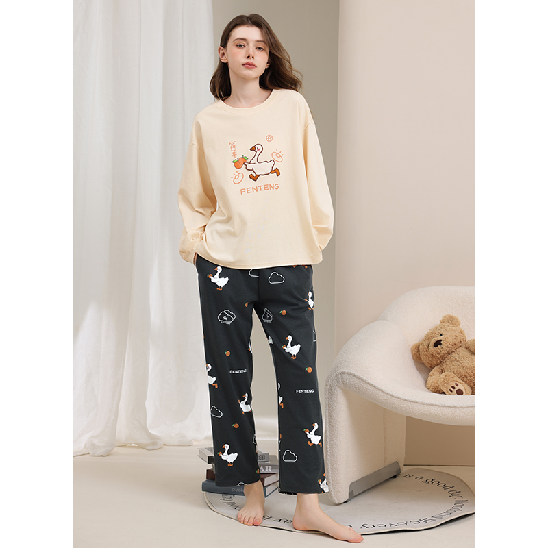 纯棉女士家居服套装 睡衣情侣卡通可爱秋季 芬腾春秋款 男 大白鹅