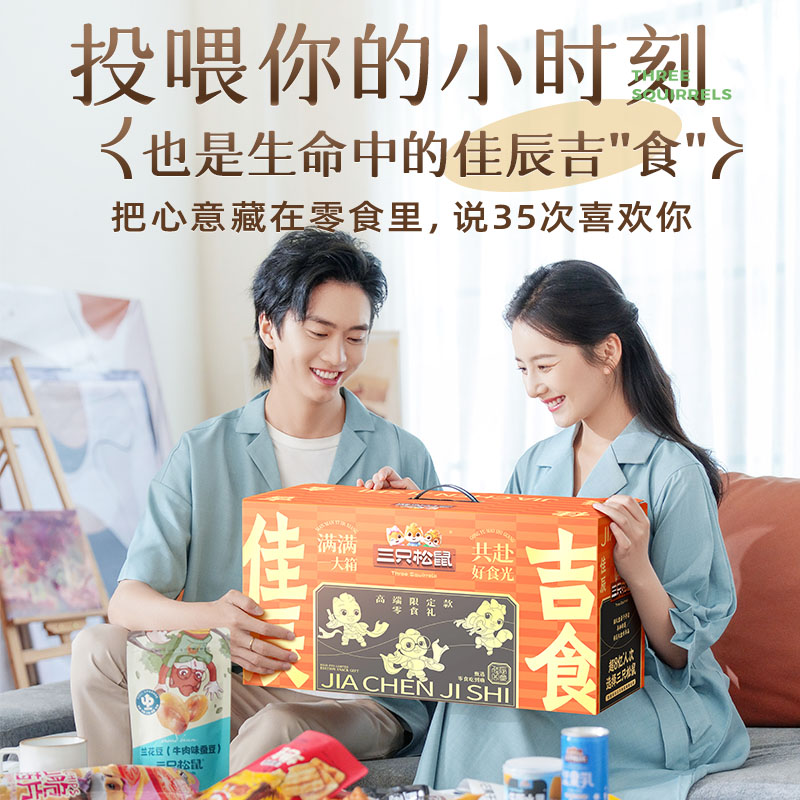 三只松鼠佳辰吉食零食大礼包35包坚果肉脯网红解馋小吃节日送礼物