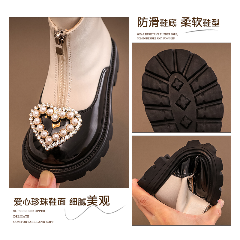 加绒小香风皮靴 公主冬季 FVM女童鞋 儿童马丁小短靴子2024秋冬新款
