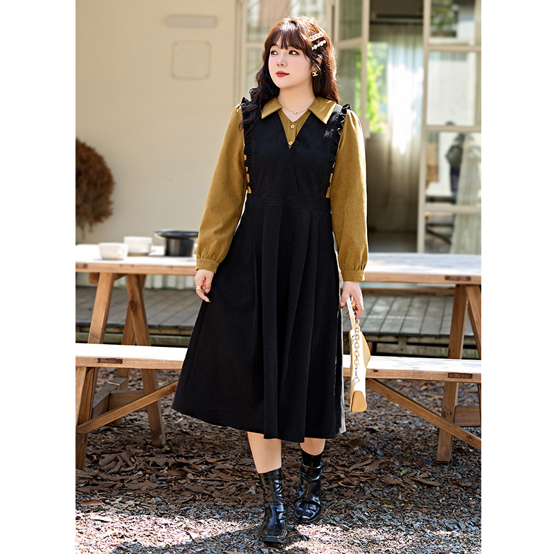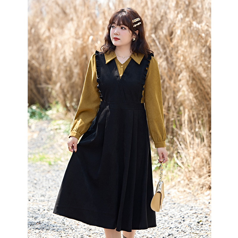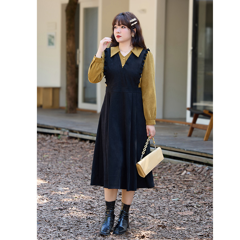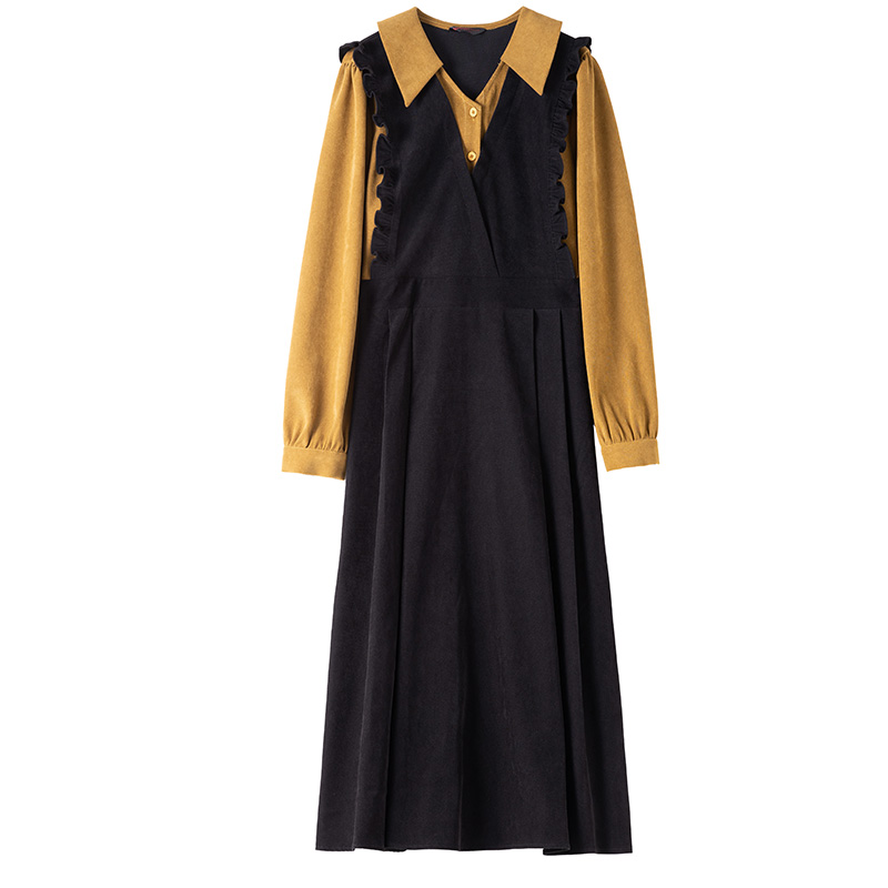 修身 假两件小香肌理连衣裙复古风长袖 珊蓓 新款 衣纱布菲2025秋冬装