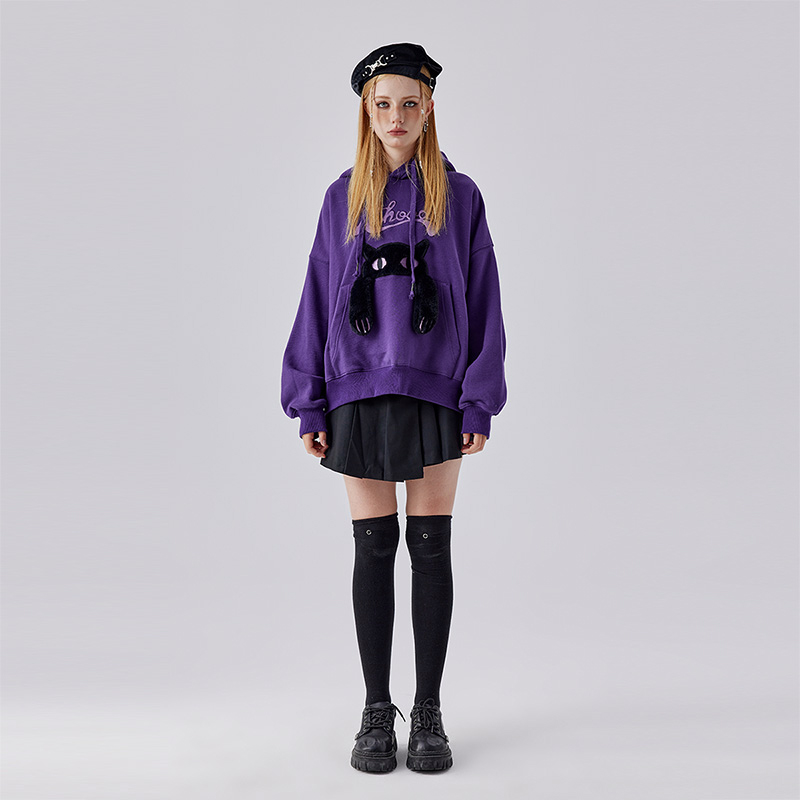 GUUKA紫色猫耳朵重磅连帽卫衣女纯棉加厚新款 潮宽松 情侣廓形帽衫