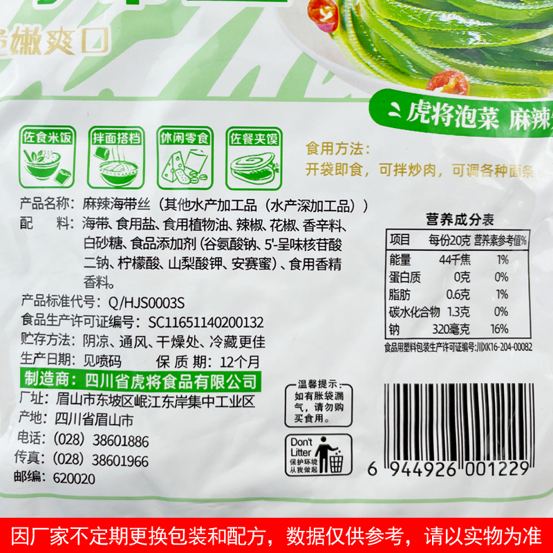 虎将麻辣海带丝96g袋装 开袋即食海味小菜四川泡菜裙带菜凉拌咸菜