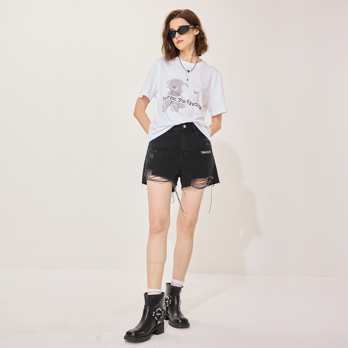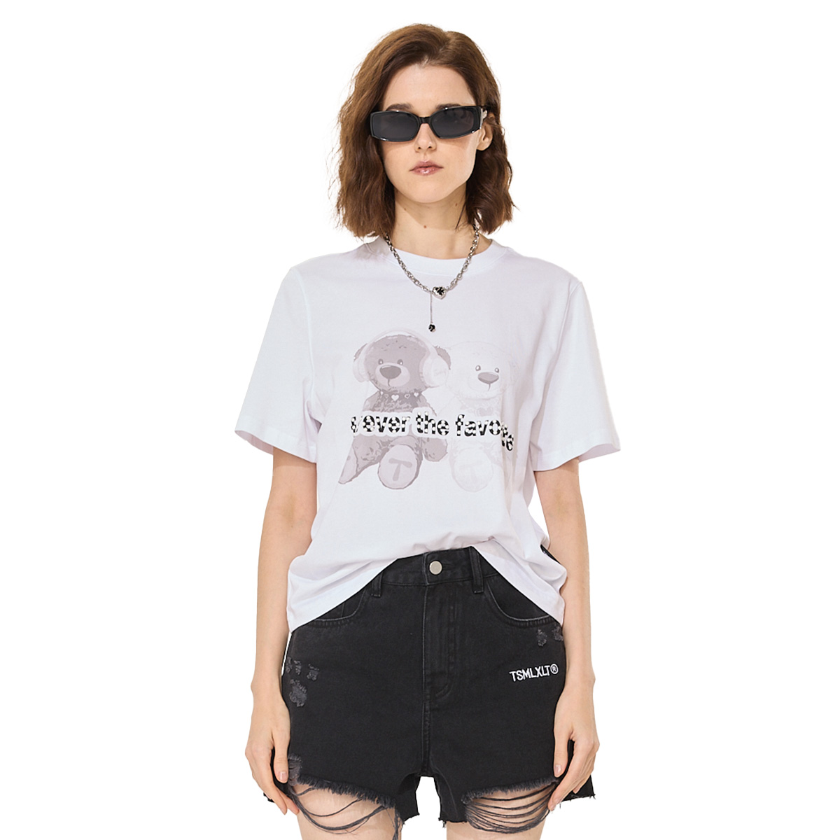 纯棉休闲舒适美式 新款 高街T恤 女25夏季 TSMLXLT泰迪熊字母印花短袖