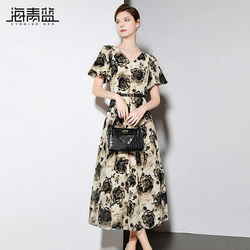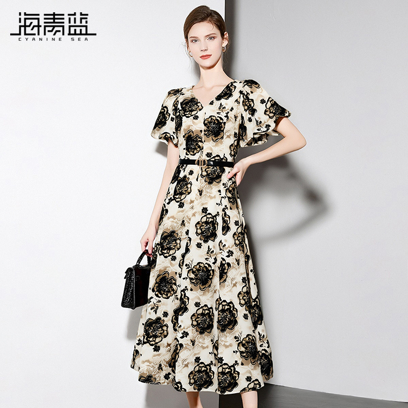 泡泡袖 时尚 连衣裙夏女2025新款 中长款 气质休闲度假裙 女装 海青蓝