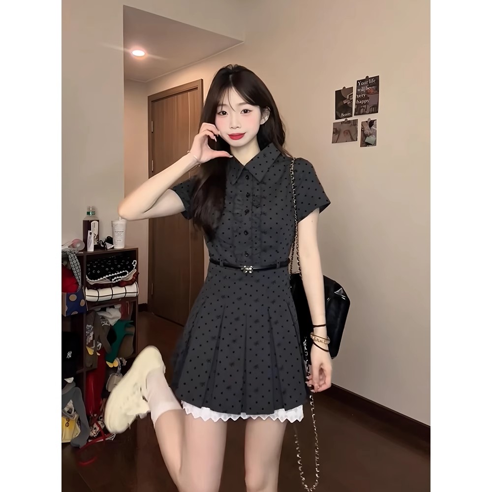 新款 口袋Polo领波嬉风连衣裙2025年夏季 妖精 裙子 今天不早起