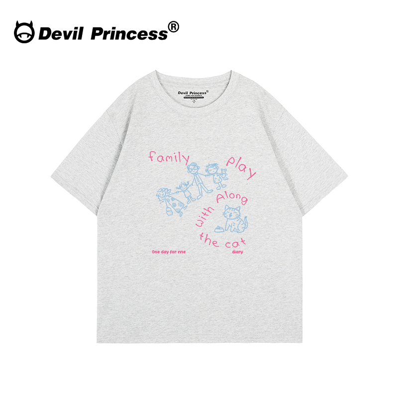 百搭纯棉正肩上衣 新款 小众设计感韩系慵懒风花灰色短袖 t恤女夏季