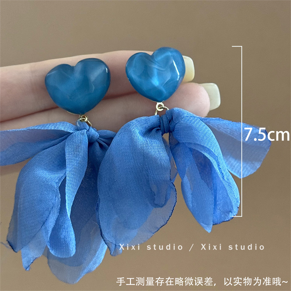 盘发器 小众简约精致百搭爱心新品 森系小清新 蓝色雪纺花瓣配饰