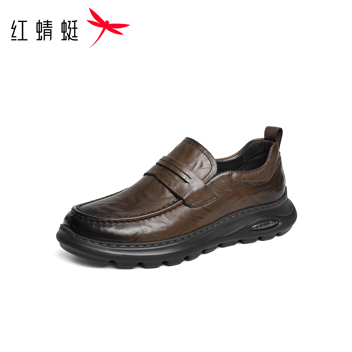爸爸鞋 红蜻蜓男士 商务真皮软底透气舒适一脚蹬式 2025新款 休闲皮鞋