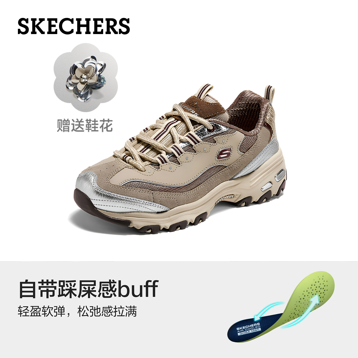 2025新款 银色老爹鞋 秋女鞋 厚底增高休闲鞋 银色运动鞋 斯凯奇熊猫鞋