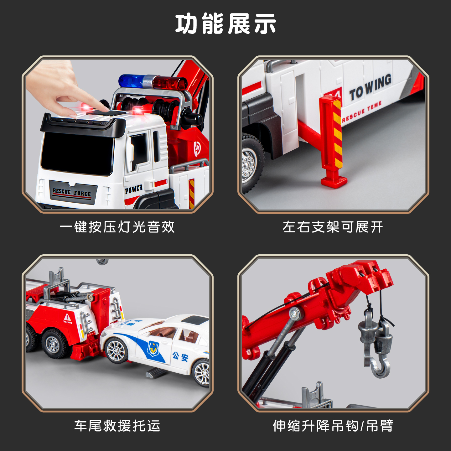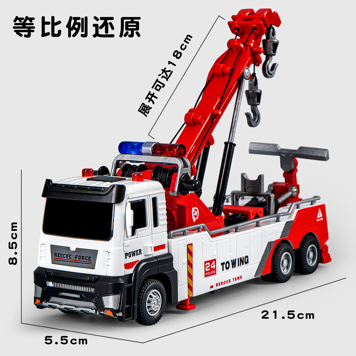 儿童仿真吊车救援车工程玩具车清障回力车男孩3到6岁运输车超大号