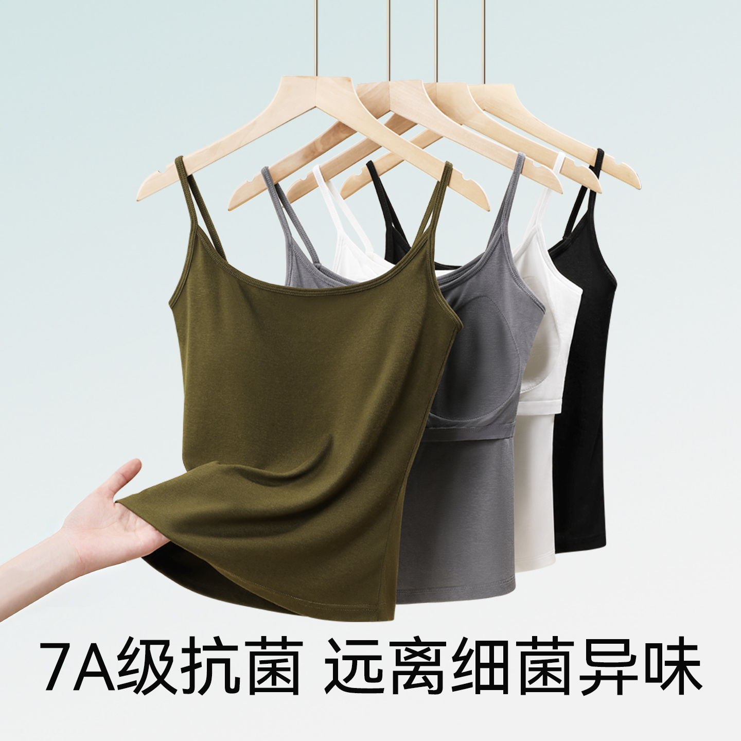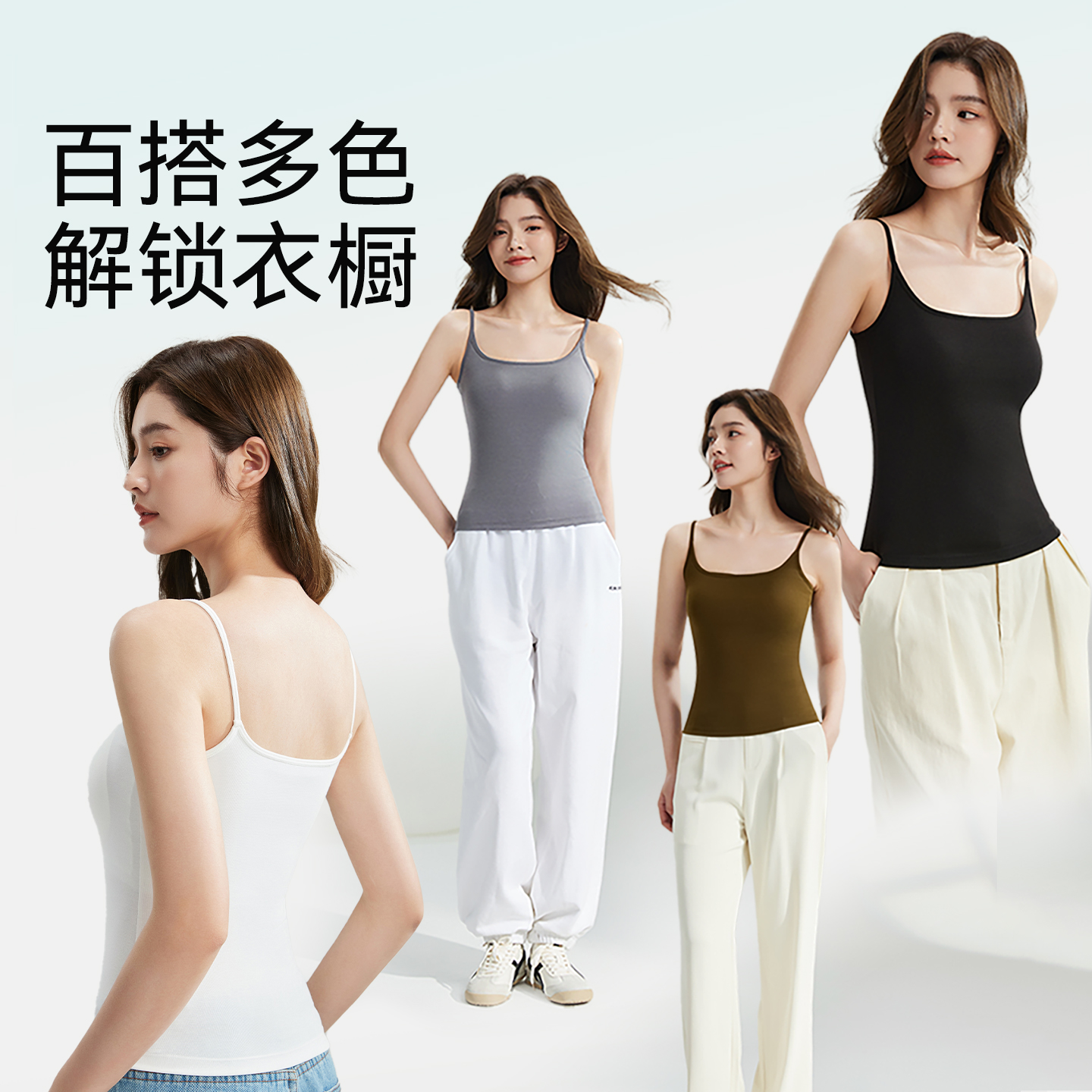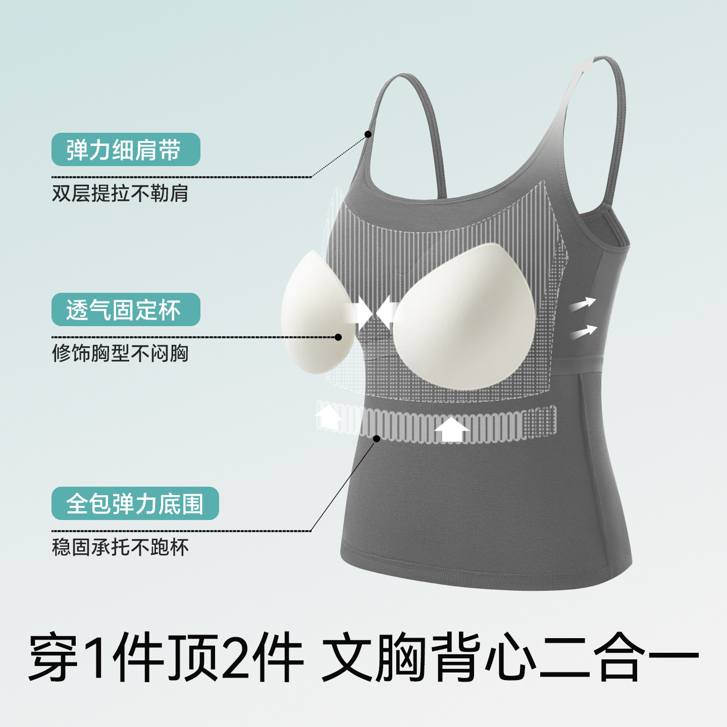 美背吊带背心女夏季 莫代尔棉带胸垫一体内衣白色冰丝凉感上衣 新款