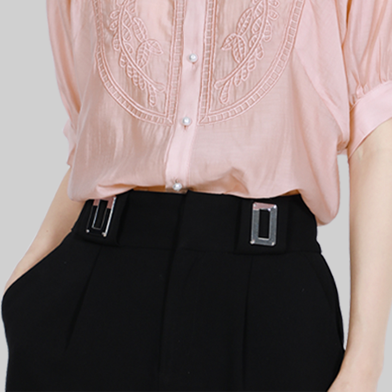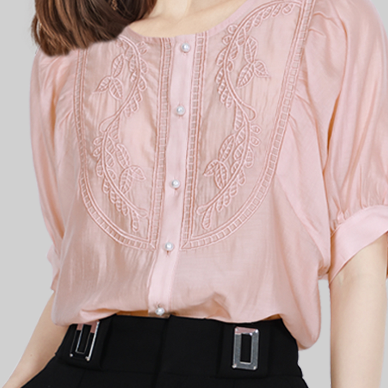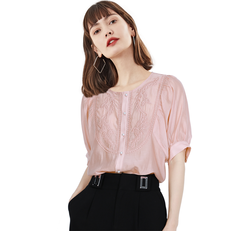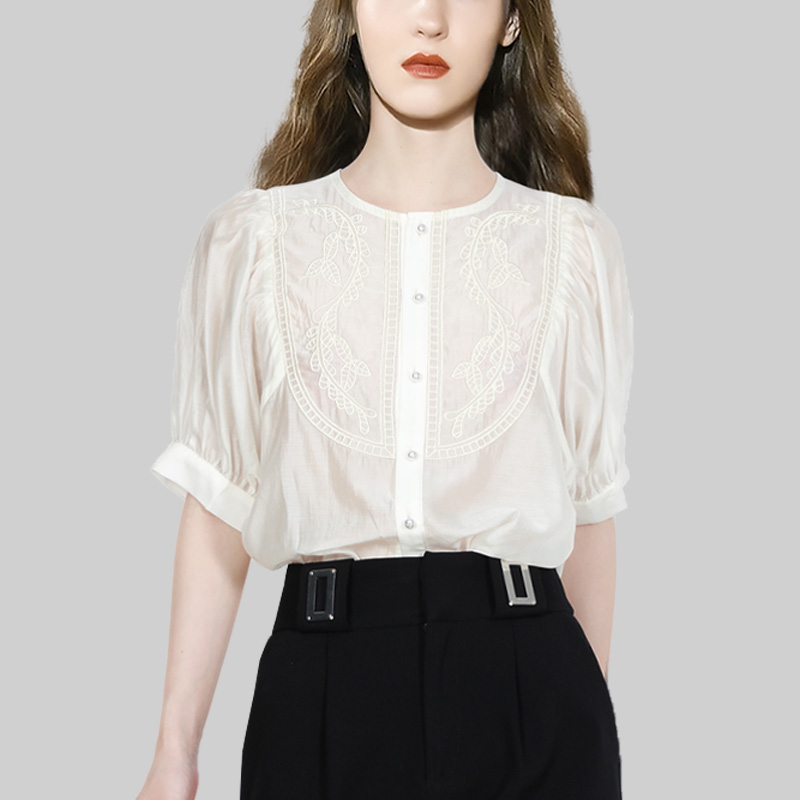 短袖 减龄洋气别致漂亮小衫 天丝刺绣衬衫 薄款 上衣女2025年夏季 法式