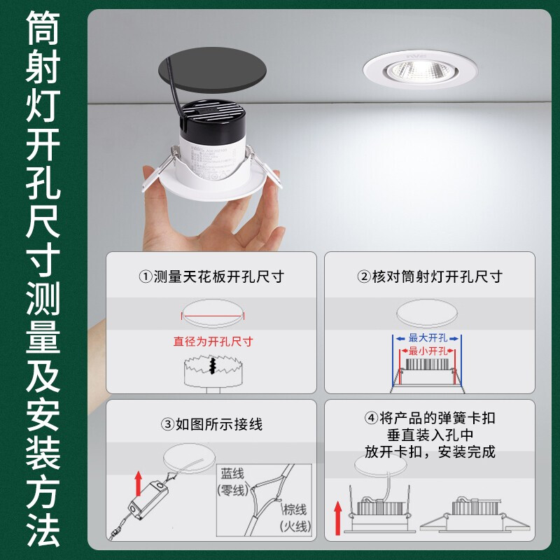 led筒灯嵌入式 75mm家用孔灯4寸6寸客厅天花板灯店铺商用射灯开孔