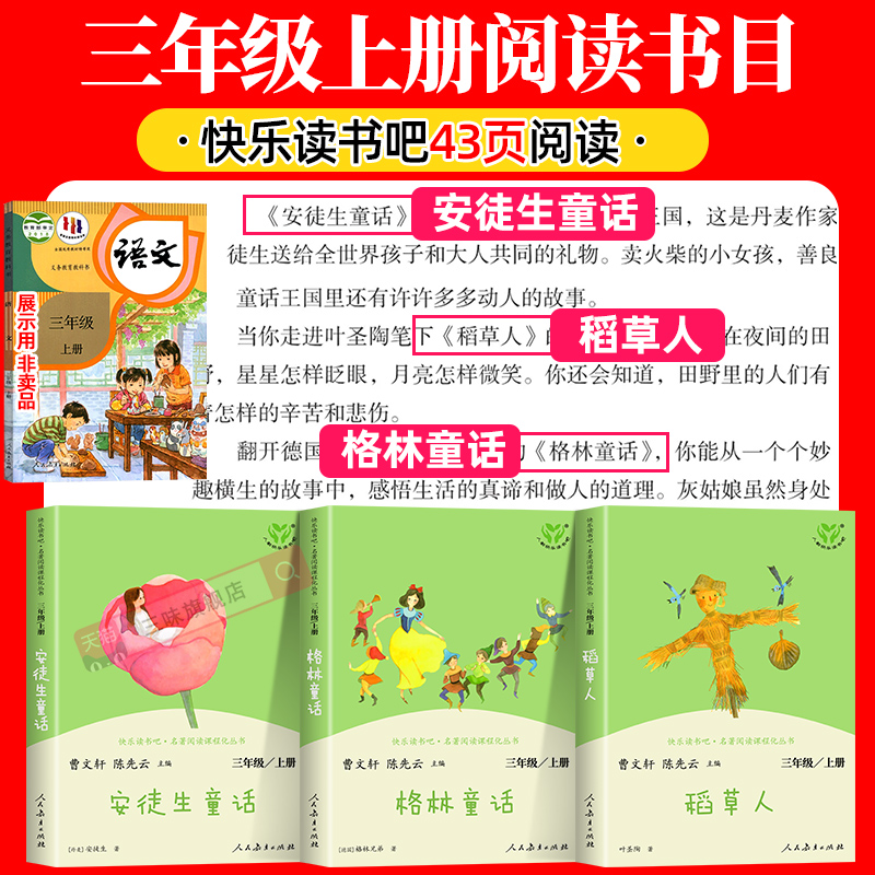 安徒生童话格林童话故事全集小学生三年级课外书必读人民教育出版 人教版 稻草人书叶圣陶正版 课外书 社 快乐读书吧三年级上册阅读
