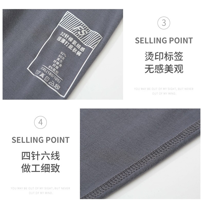 单件线裤 莫代尔秋裤 无痕男士 春秋高腰紧身弹力内穿打底裤 男薄款
