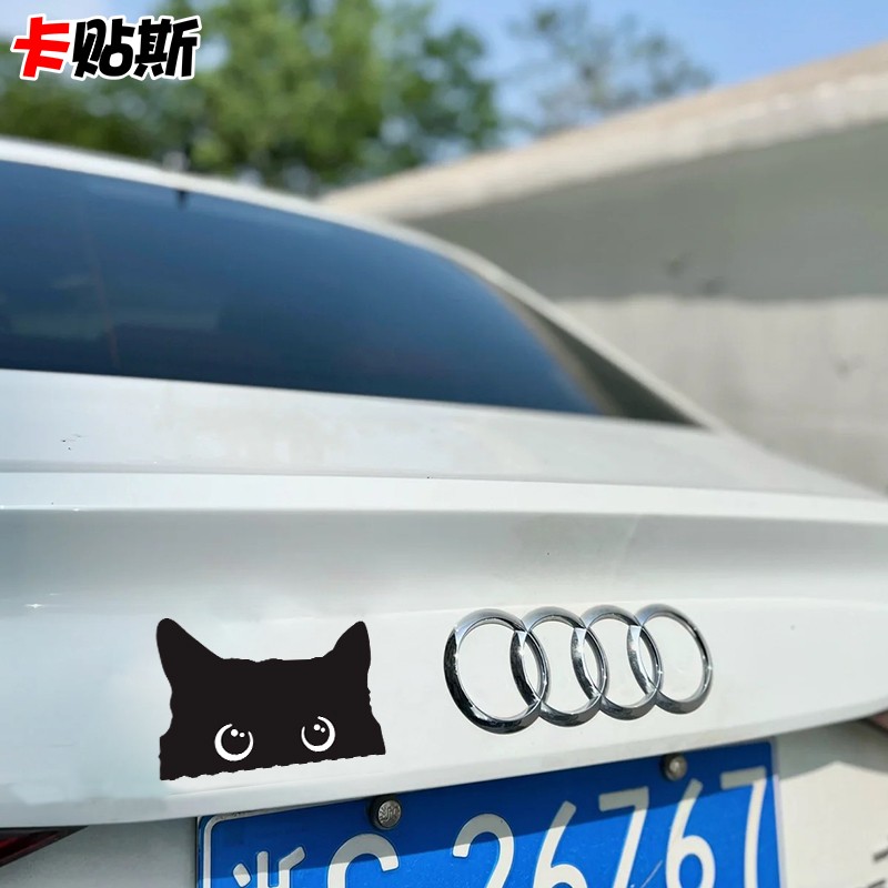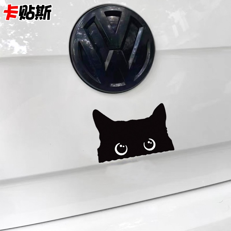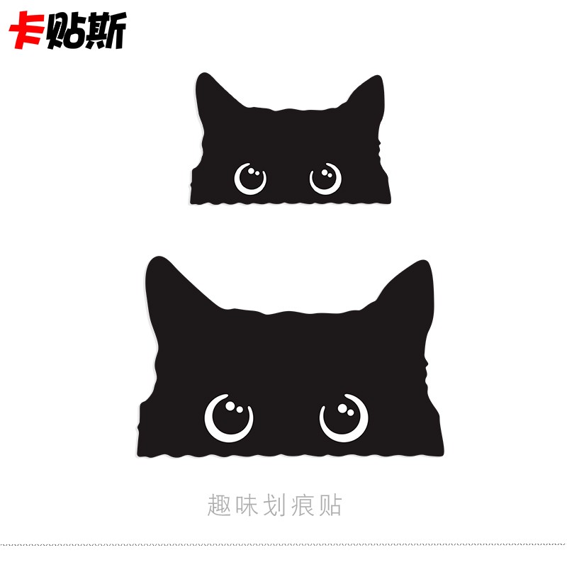 黑猫咪汽车电动车贴纸车尾保险杠小划痕遮挡车标装 饰防水卡通趣味