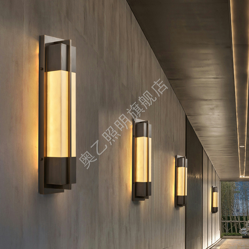 新中式 壁灯客厅卧室床头灯门口过道仿云石全铜壁灯户外防水庭院灯