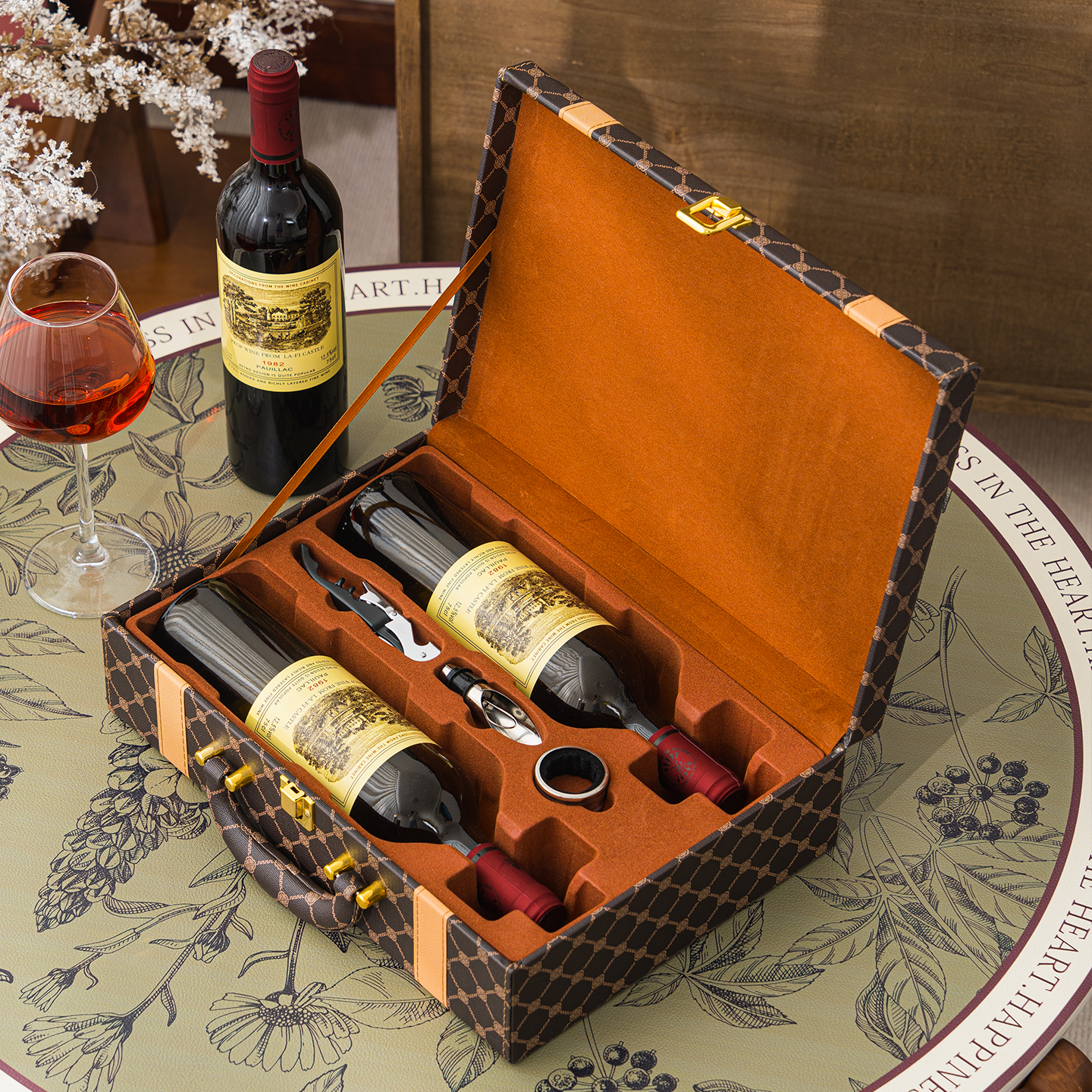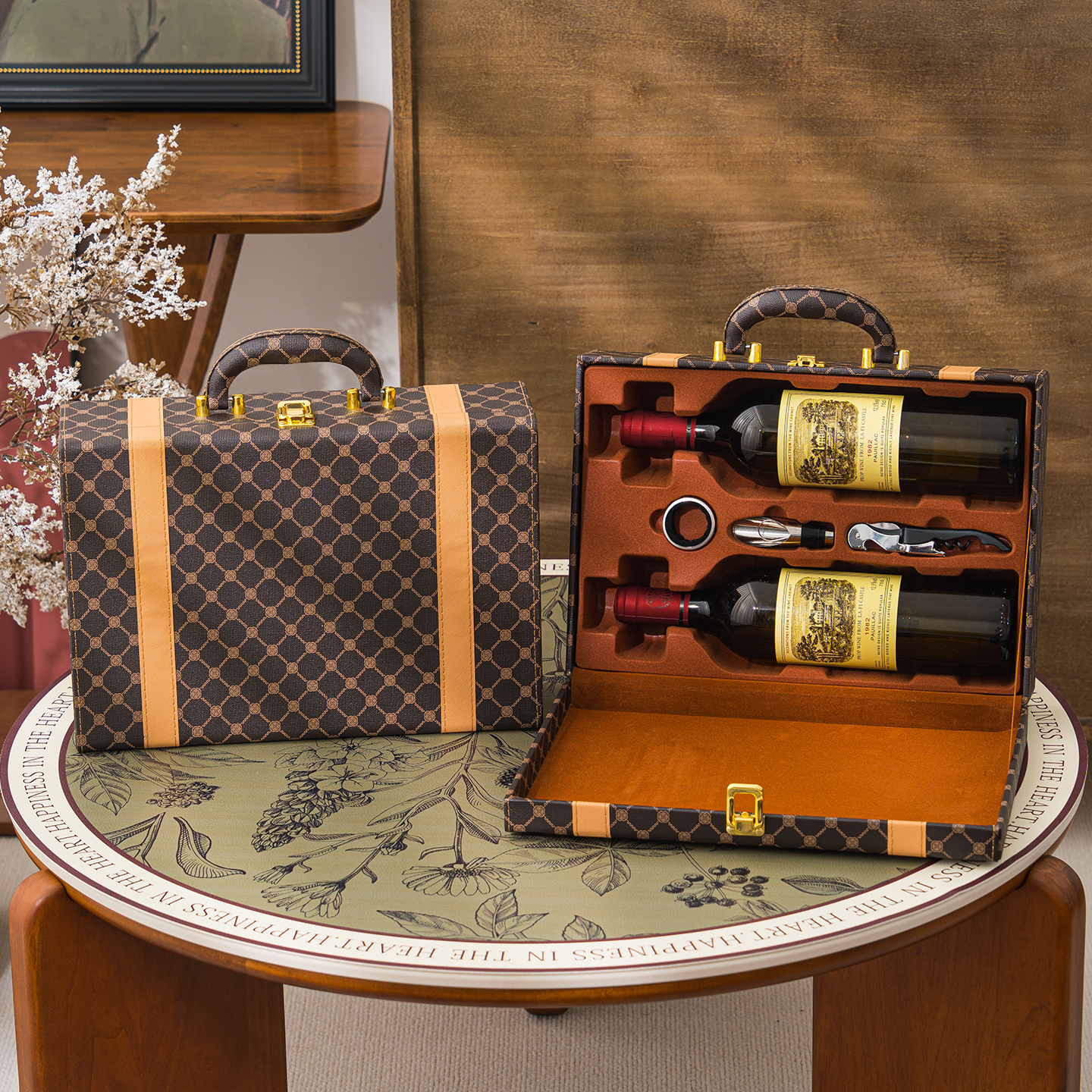 红酒包装 红酒皮盒酒盒通用手提袋2高档葡萄酒箱木盒 礼盒双支装