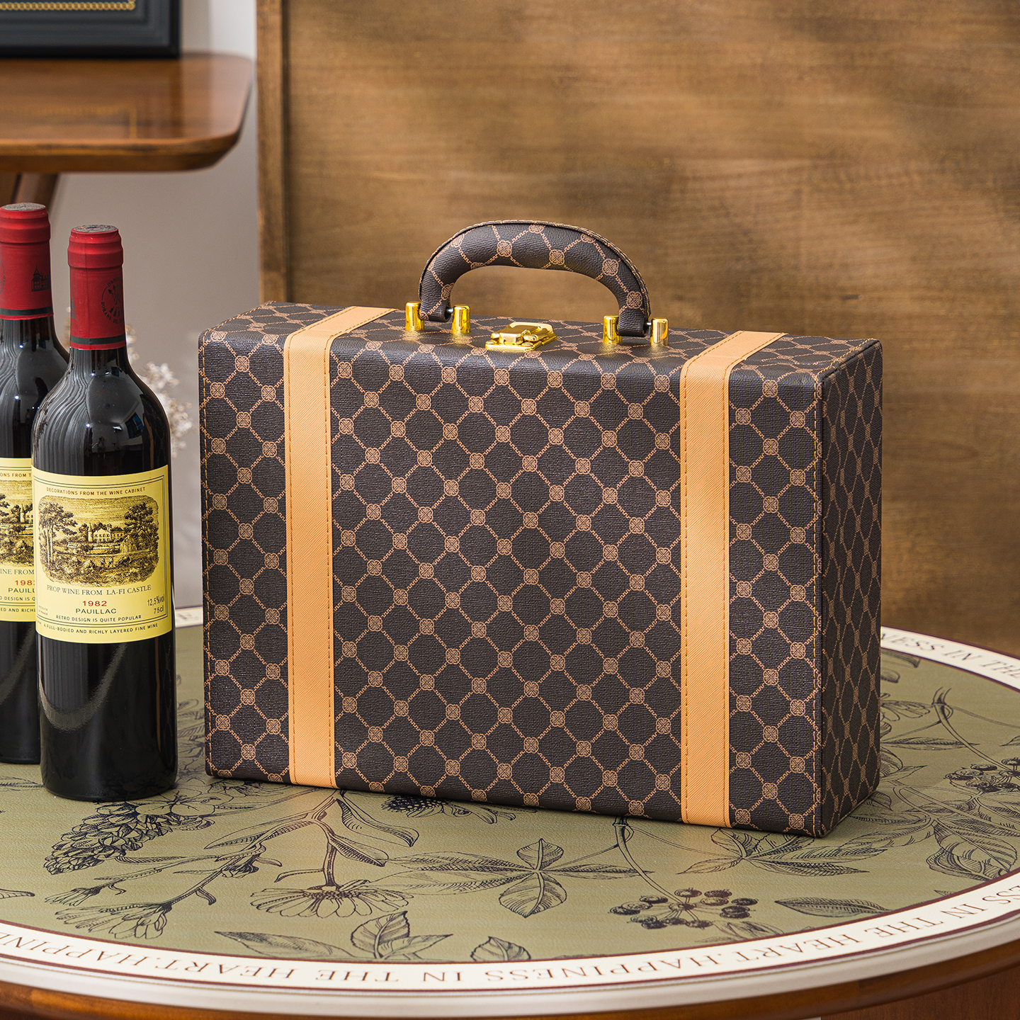 6瓶装 盒酒箱 皮制葡萄酒礼品盒厂家 红酒礼盒四支包装 高档六支只装