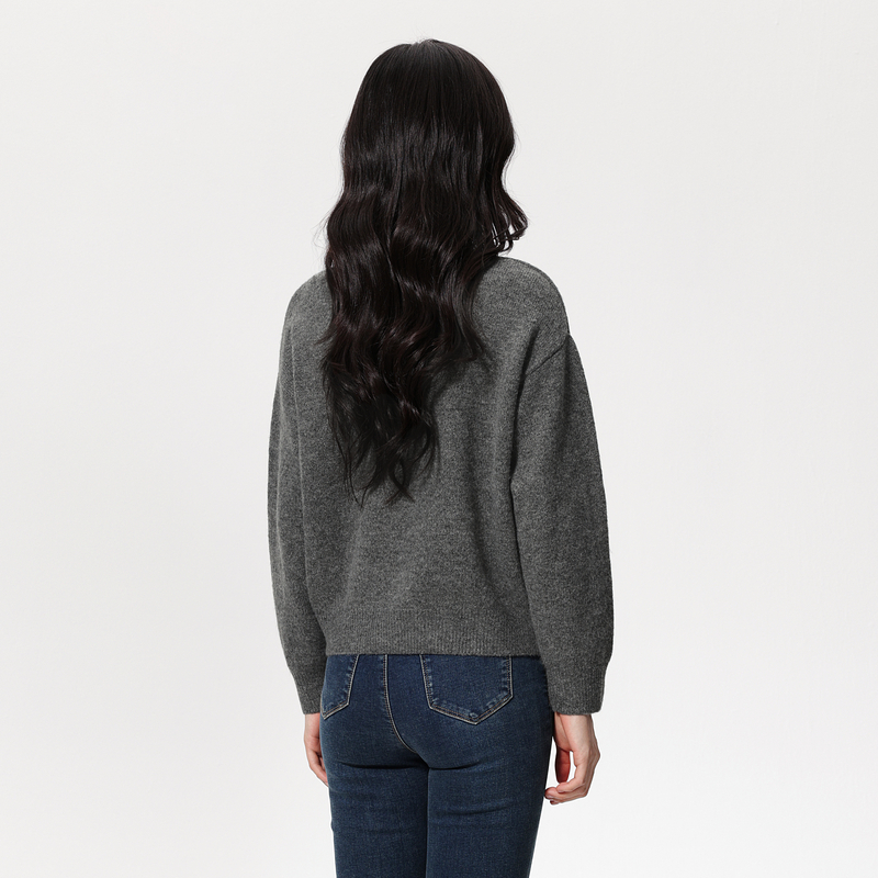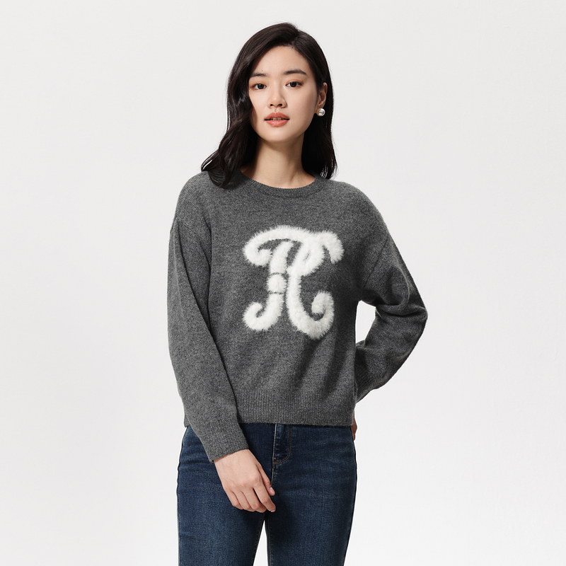 冬季 飘蕾灰色休闲毛衣针织衫 字母设计通勤宽松显瘦女 清仓直降