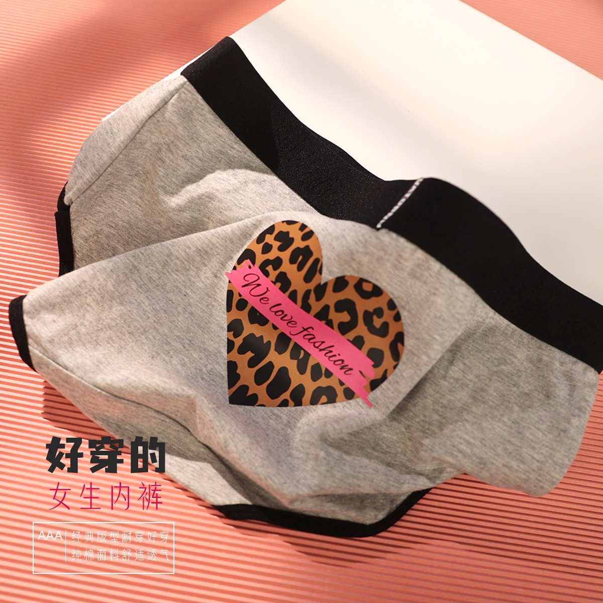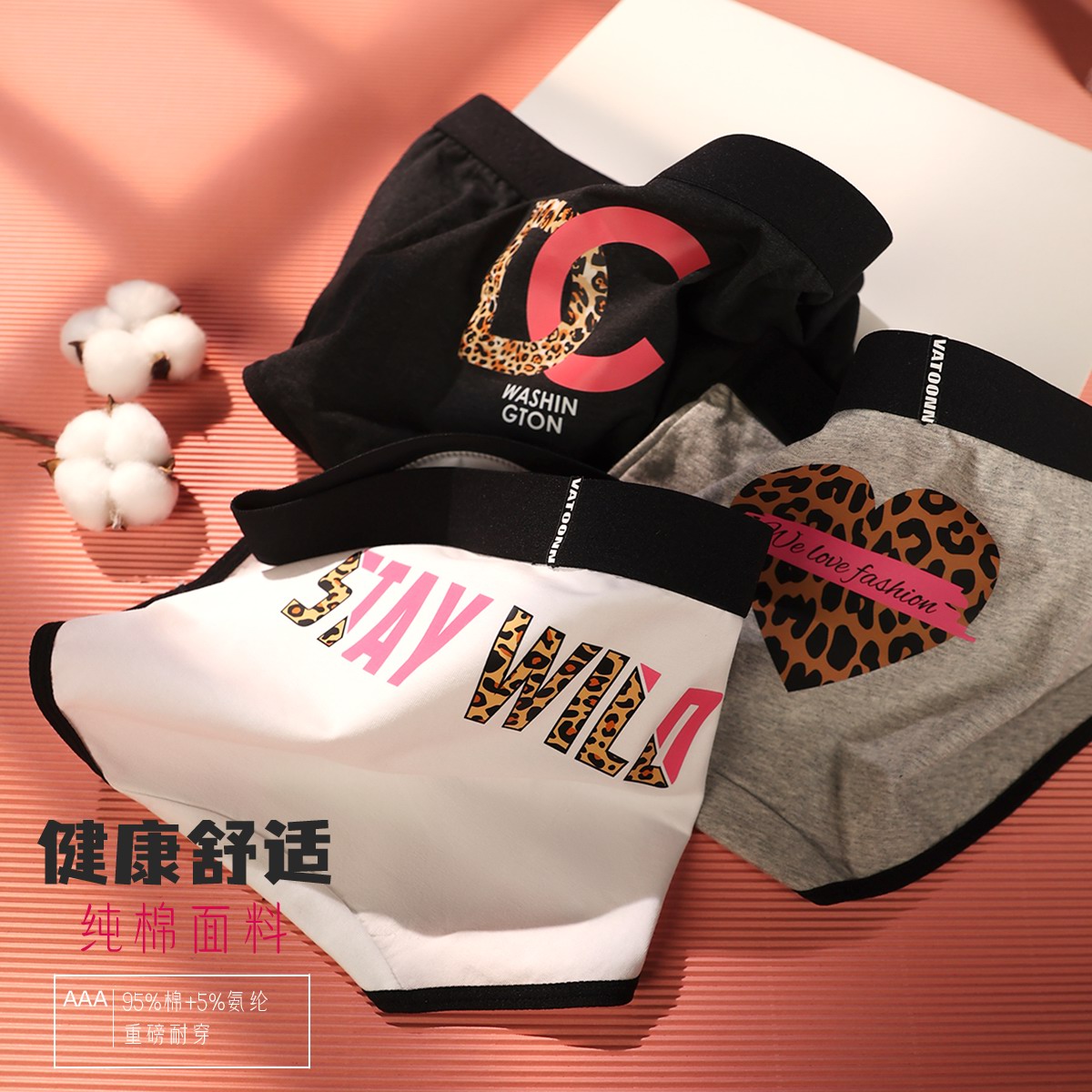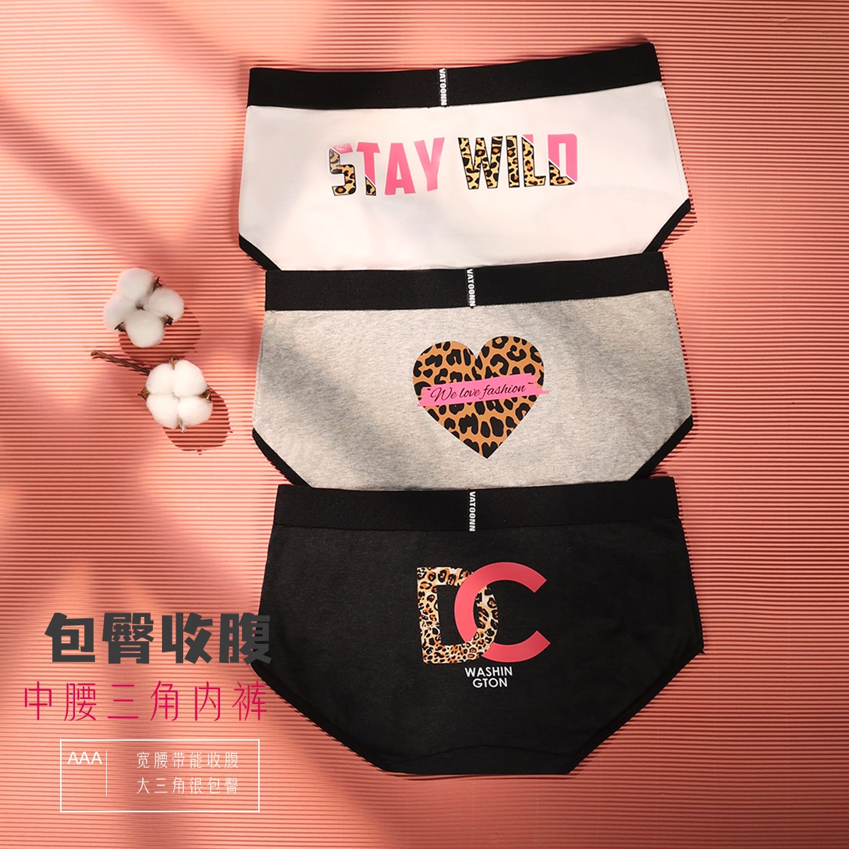 豹纹字母女士卡通三角内裤 纯棉印花中腰收腹宽腰带抗菌裆透气大码