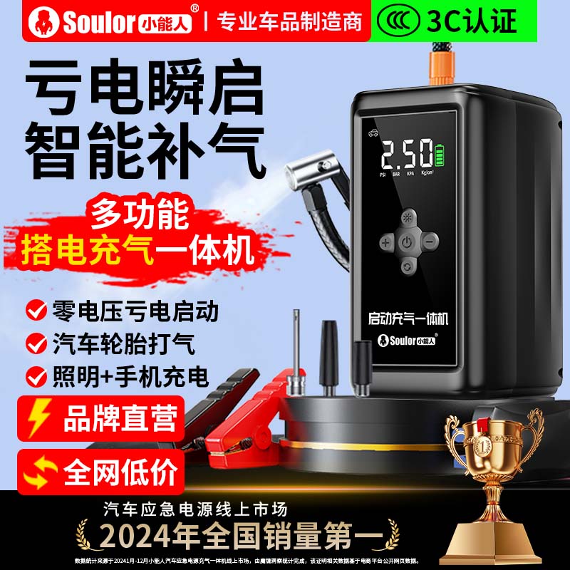 小能人汽车应急启动电源车载充电宝紧急强启起电瓶搭电宝打火神器