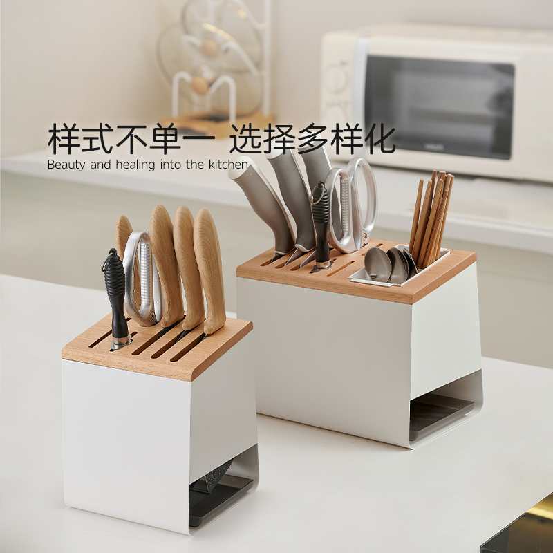 白色厨房刀架置物架实木台面刀具刀座筷子一体收纳架收纳菜刀架子