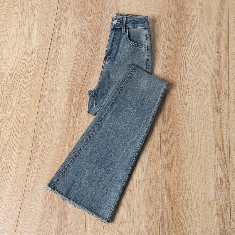 女2025春秋小个子高腰弹力显瘦辣妹喇叭裤 蓝色修身 毛边微喇牛仔裤