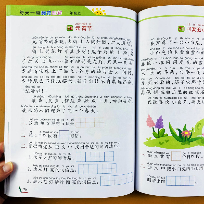 一年级上册阅读理解训练人教版 语文1年级上册课外阅读理解强化训练每天一篇短文阅读训练带注音阅读理解练习册80篇真题阅读智古老