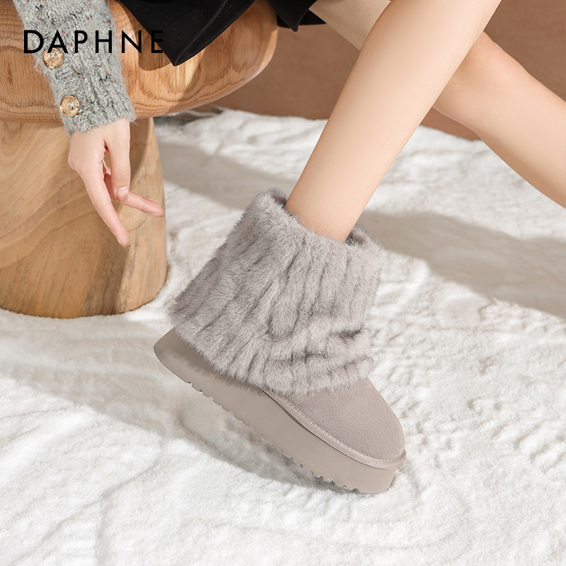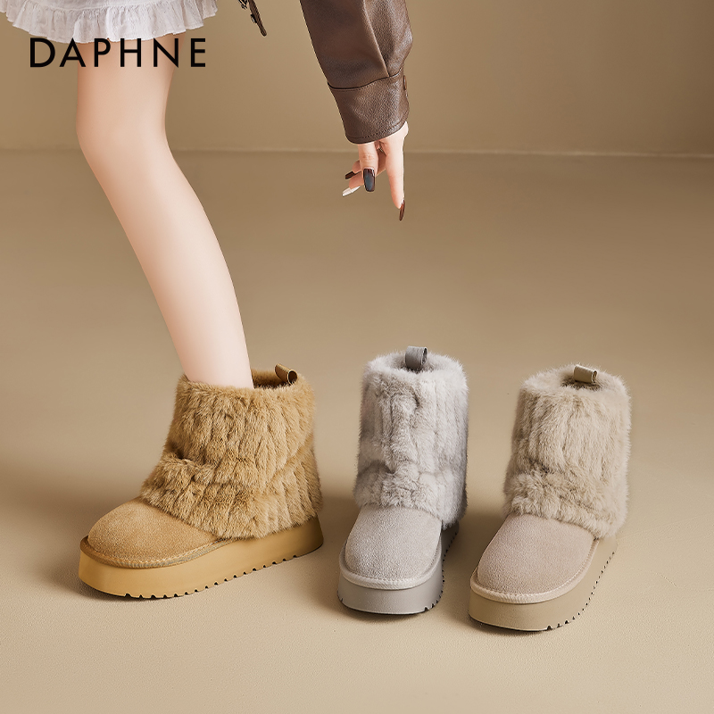 加绒加厚裤 毛毛棉鞋 管短靴 外穿2025新款 达芙妮超好看雪地靴女冬季
