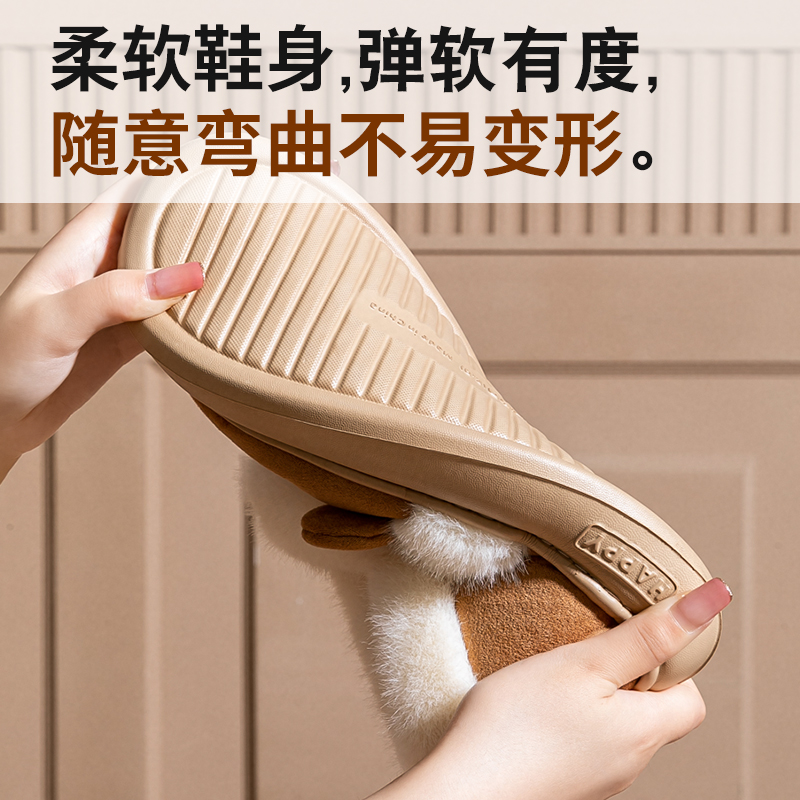 室内居家用加绒保暖厚底防滑棉鞋 2024新款 冬天 女冬季 踩屎感棉拖鞋