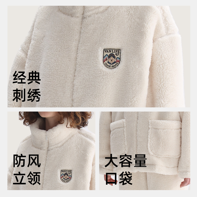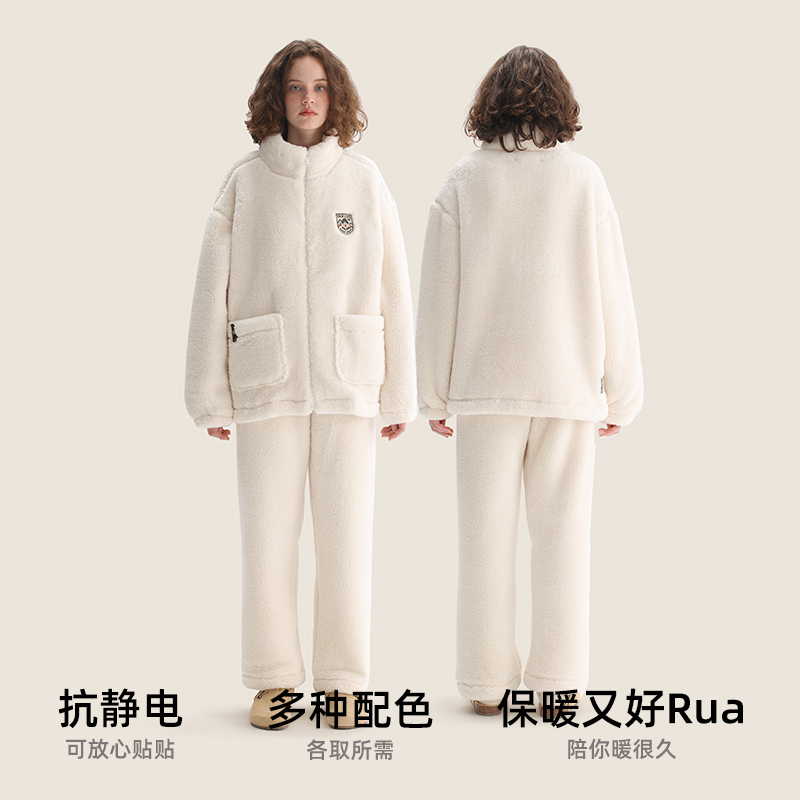 TeenieWeenie小熊新款 睡衣女秋冬立领加绒加厚保暖情侣家居服套装