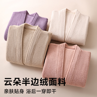 猫人睡袍女秋冬款 加绒加厚半边绒浴袍纯欲风珊瑚绒高级感吸水长袍