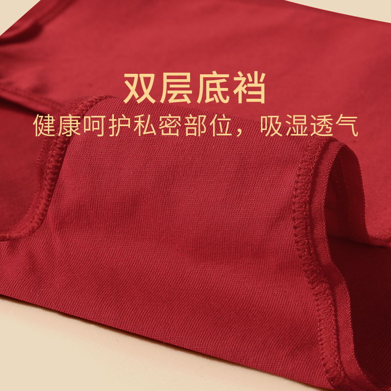 三角裤 本命年红内裤 2025好运底裤 大码 头 女酒红色纯棉中腰包臀短裤