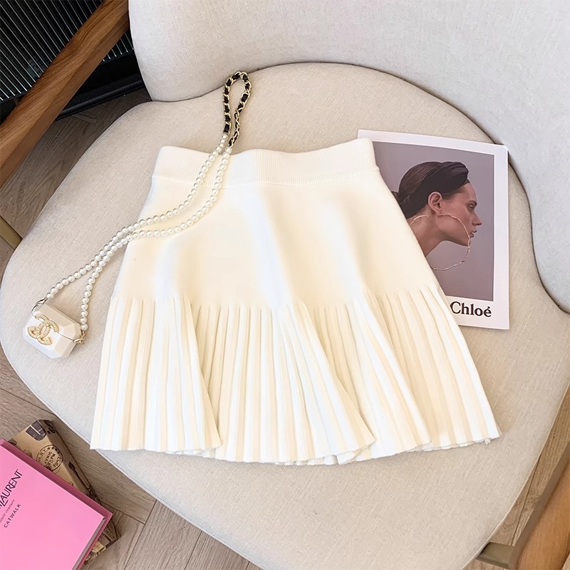 大码 早春季 百褶针织裙女爆款 短款 胖mm高腰软糯百搭a字半身裙 新款