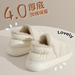 毛毛绒室内家居保暖鞋 厚底防滑2025新款 子居家 女士秋冬季 棉拖鞋
