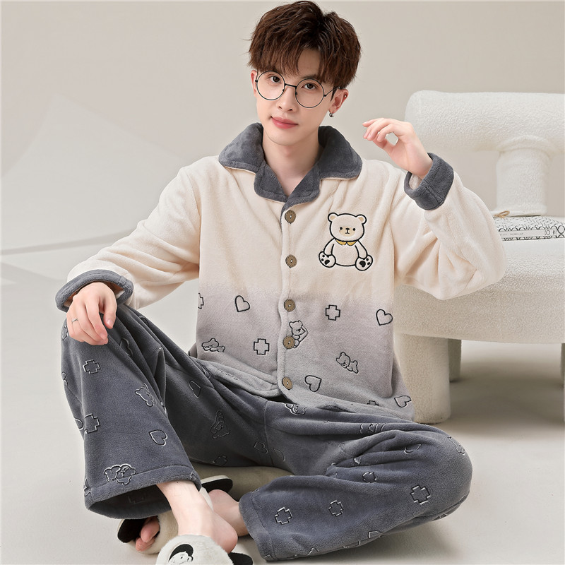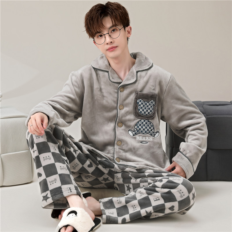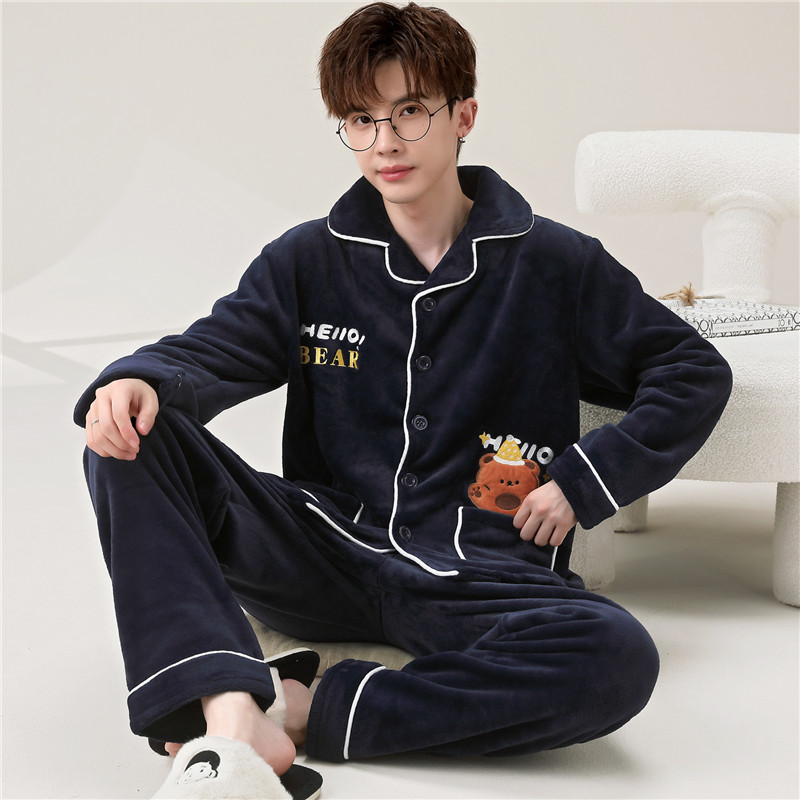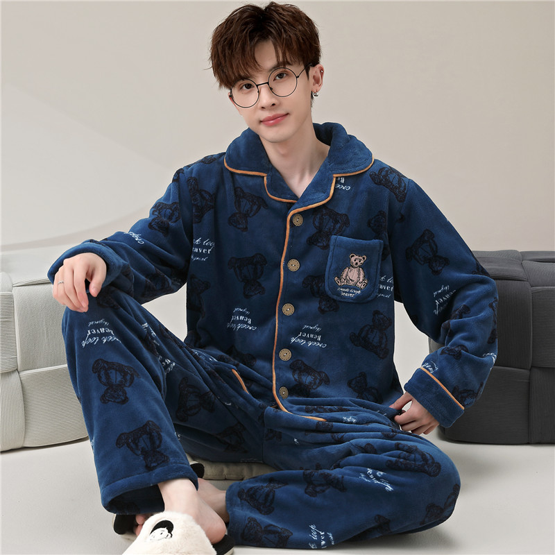 情侣睡衣 tbh野兽派家居都市野兽黑豹法兰绒家居服套装 可外穿冬季