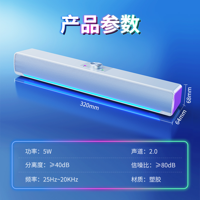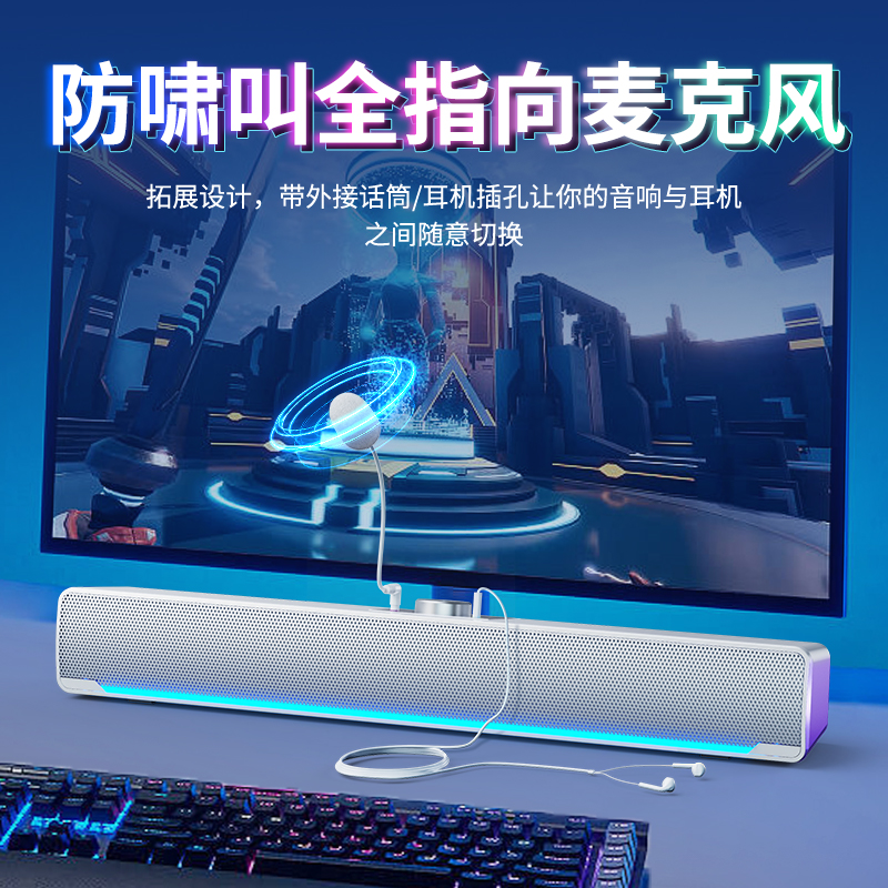 电脑蓝牙音响台式 喇叭带麦克风一体 家用桌面低音炮音箱长条式