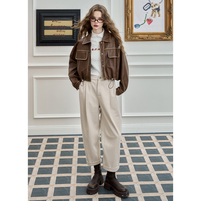 休闲显瘦宽松九分裤 妖精 新款 女2025年秋季 子 口袋高腰直筒哈伦裤