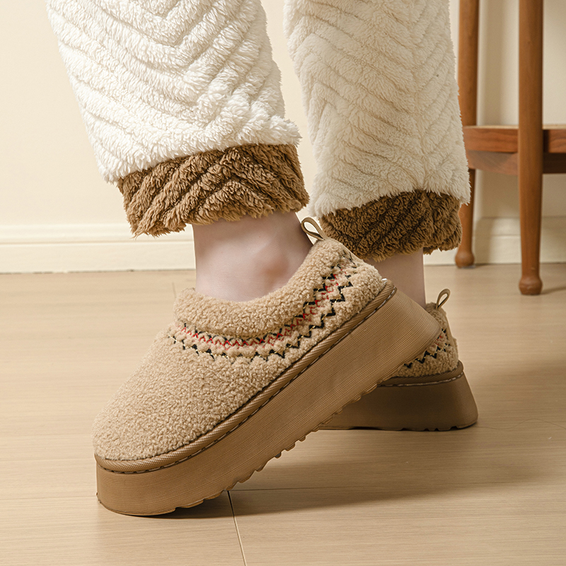 室内家居保暖防滑棉鞋 外穿包跟毛绒2025新款 女士秋冬季 厚底棉拖鞋