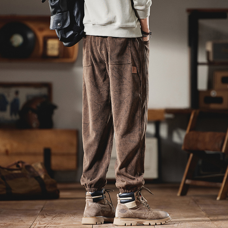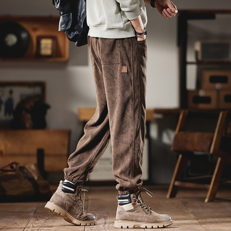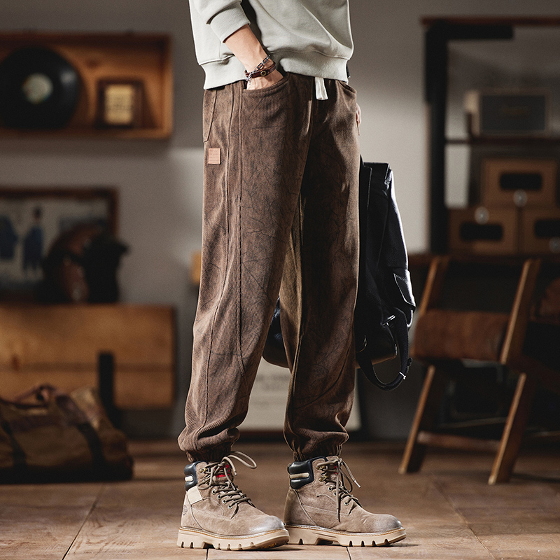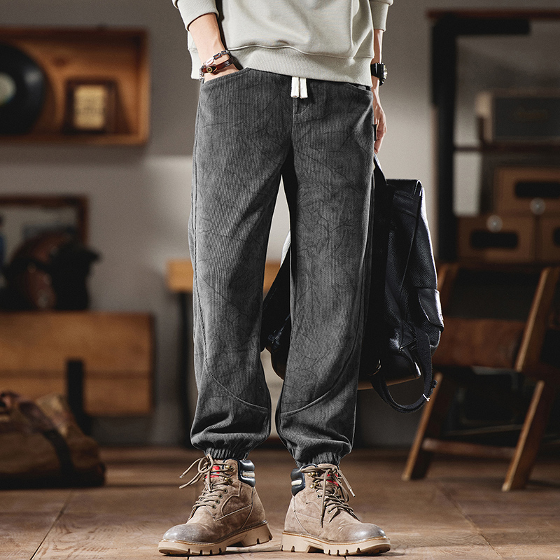 运动束脚裤 潮流2024年秋冬贴标抽绳大码 子 男个性 宽松休闲针织卫裤