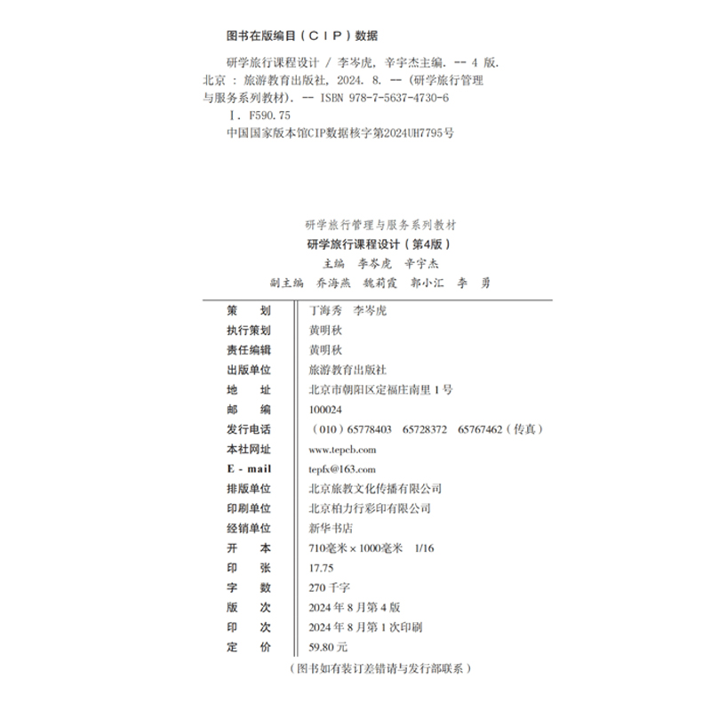 第4版 旅游教育出版 9787563747306李岑虎 研学旅行管理与服务系列教材 社 辛宇杰主编 研学旅行课程设计