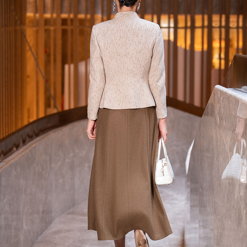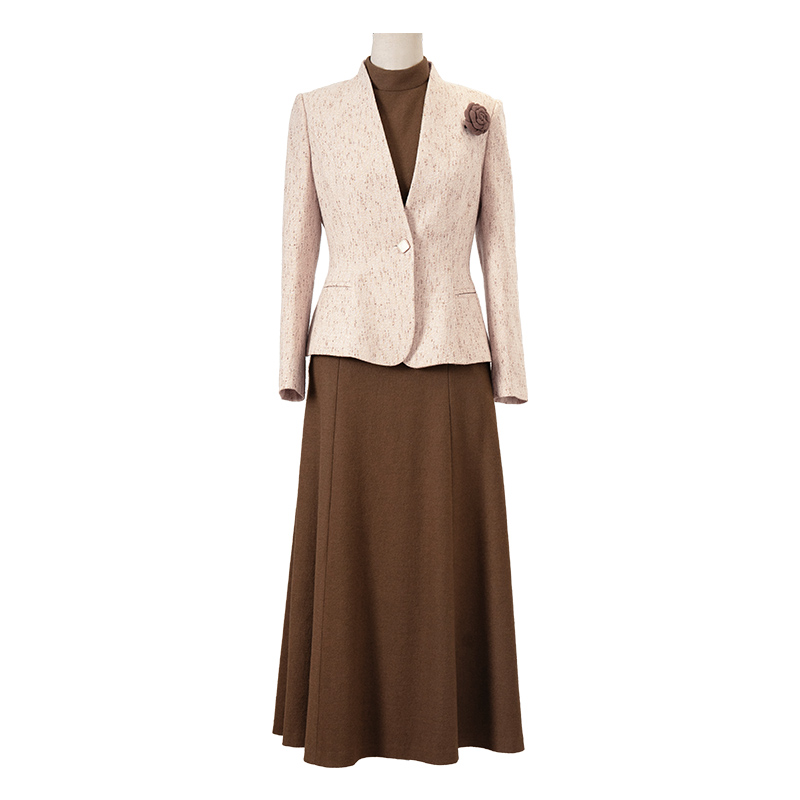 气质名媛端庄立领毛呢连衣裙两件套 新款 咖色小香风套装 女2025冬季