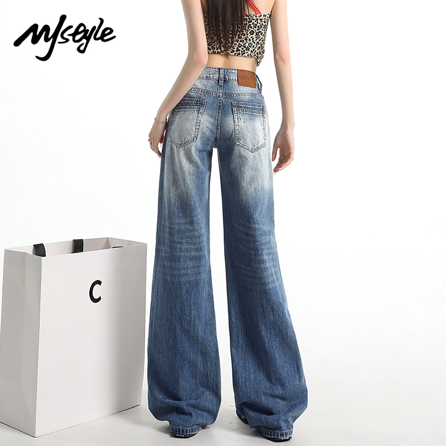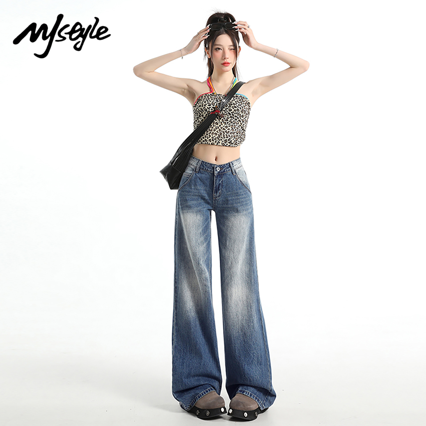 子女 百搭休闲通勤牛仔蓝阔腿长裤 POLOWALK女士直筒牛仔裤 秋冬新款
